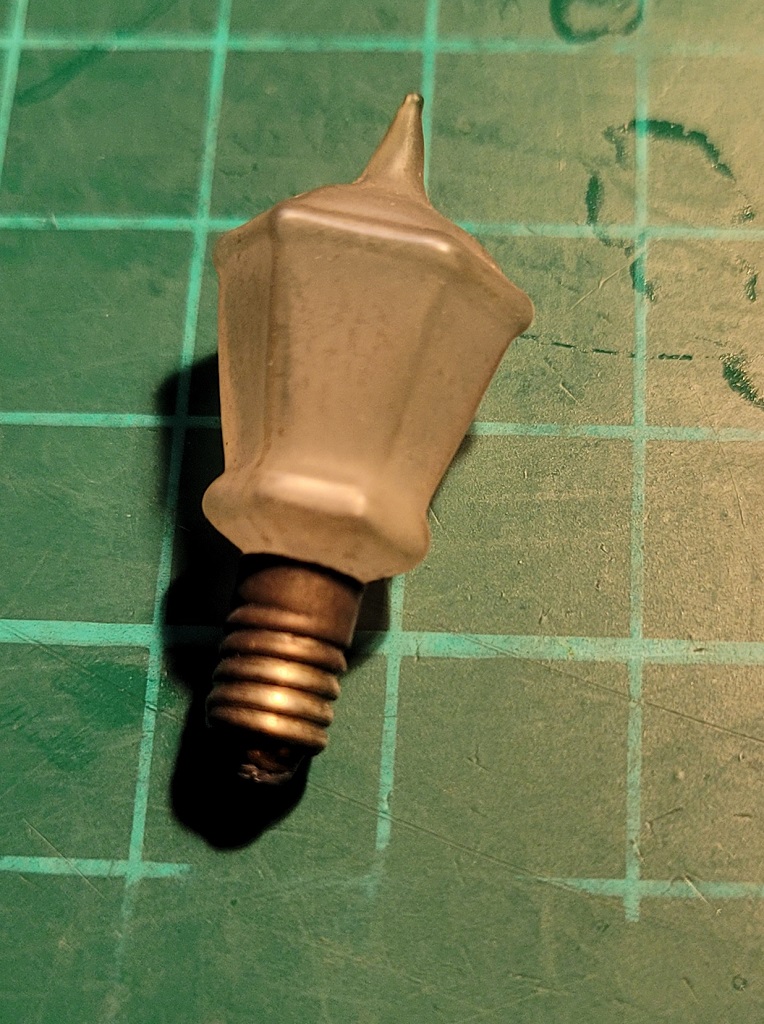 Das höchst interessante an dieser Laterne ist für mich das Leuchtmittel/die Glühbirne! Das Glas gepresst, in Form einer alten Gaslaterne!!!! Hab ich so noch nie gesehen.