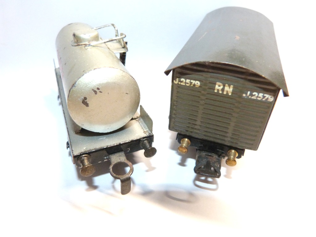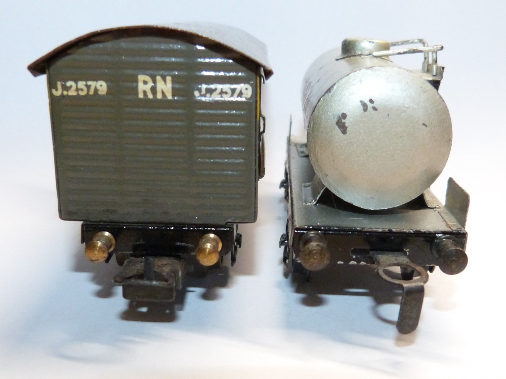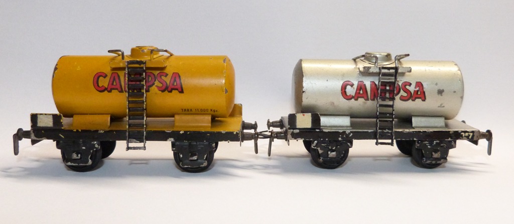 Hallo zusammen, der spanische Hersteller Electrotren ist bekannt für Modelleisenbahnen der Spurweiten 0 und H0. Die ersten Züge wurden 1954 in Spurweite 0 gefertigt. Kurz darauf begann die Produktion auch in Spurweite H0. Anscheinend wurden aber auch Züge in Spurweite S hergestellt, Bisher habe ich aber in keinem Katalogen einen Hinweis darauf gefunden. Die Bilder zeigen einen geschlossenen Güterwagen der Spurweite H0 und Kesselwagen der Spurweite S. Interessanterweise tragen die Kesselwagen der Spurweite S die Artikelnummern der späteren Güterwagen der Spurweite H0. Sie verfügen jedoch über ein breiteres Fahrgestell, einen größeren Radsatz und andere Kupplungen. Weiß jemand mehr? Grüße Rainer