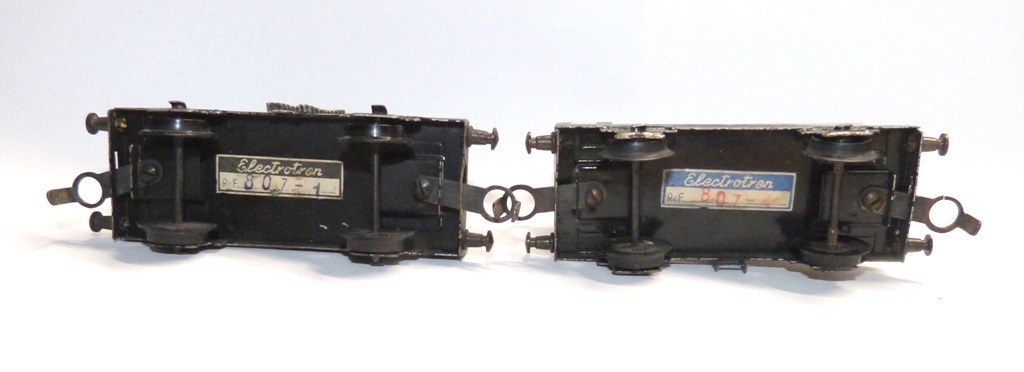 Electrotren soll ab 1951 Spur 0 Eisenbahnen angeboten haben. 1954 wurde neben der Spur H0 auch Spur S eingeführt. Dabei unterscheiden sich die Spur S Fahrzeuge in den von dir beschriebenen Details. 1957 wurde Spur S wieder eingestellt. Für den Zeitraum 1954-57 konnte ich keine Kataloge finden, ist aber auch nicht meine Welt.