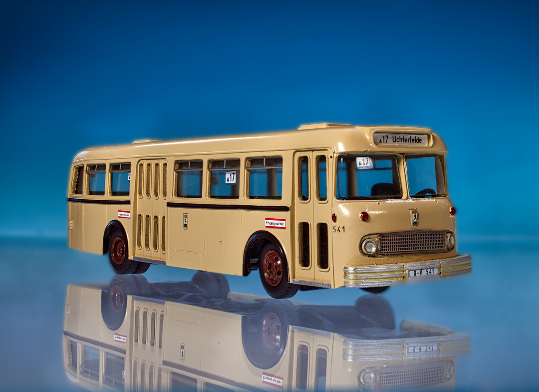 Solange ich mich mit Berliner Bussen begnügt hatte, stand diese Frage bei mir nicht. Inzwischen sind auch Straßenbahnen und Züge der Berliner S-Bahn dazu gekommen. Da erweist sich so ein "kleiner" Fototisch schon als limitierender Faktor. Mehr als einen Viertelzug der S-Bahn oder eine fünfteilige Flexity kann ich ohne aufwendige Bildnachbearbeitung damit nicht fotografieren. So ein Stadtbahnzug, wie auf dem letzten Bild, hatte beim Original bis zu 12 Wagen. Wenn man gerne lange Züge fotografieren möchte, ist sicher eine Modellbahnanlage die bessere Wahl.